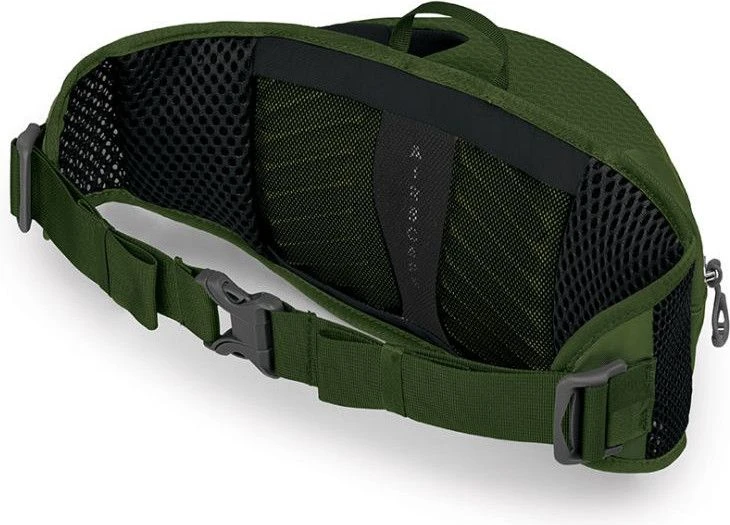 - The curved belt, specially adapted for cycling, as well as the compression straps, provide stability and comfort by keeping the bag close to the body. This is the result of the combination of an enveloping and breathable hip belt, Osprey’s ErgoPull cross-strap closure system.