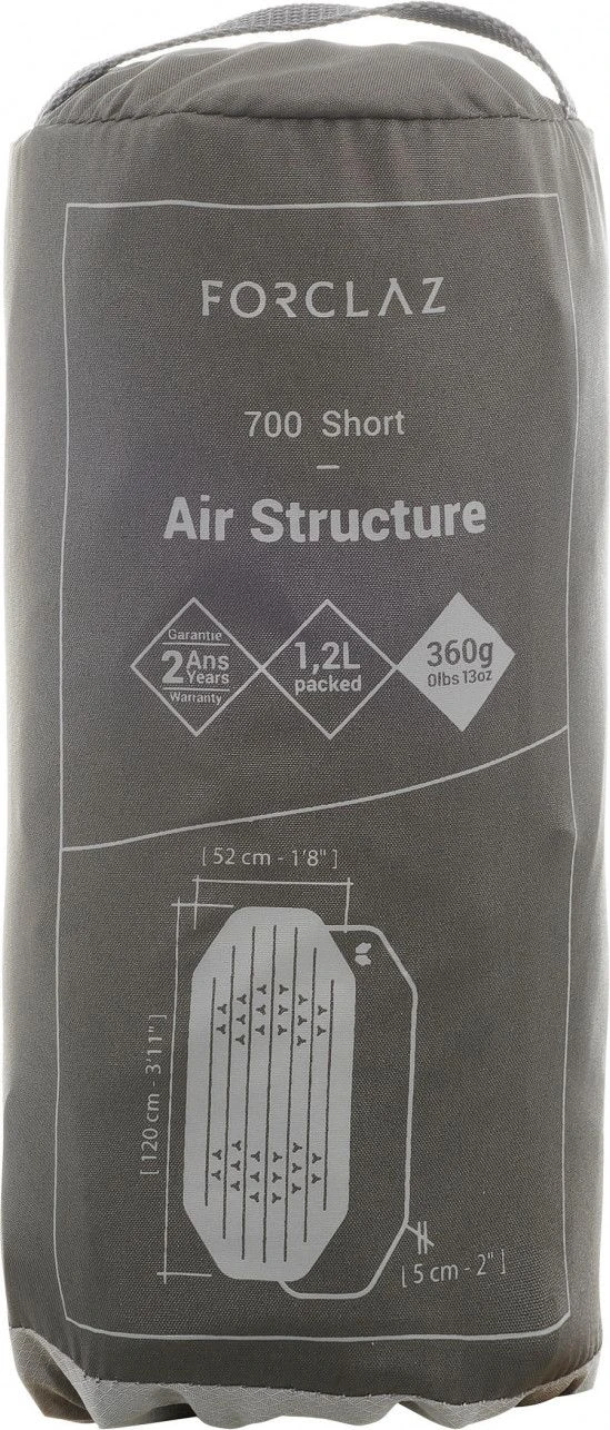360 g. 120 x 52 x 5.5 cm. The comfort of an air mattress, short, ultra-light & ultra-compact that is forgotten in your backpack! Take only the minimum!