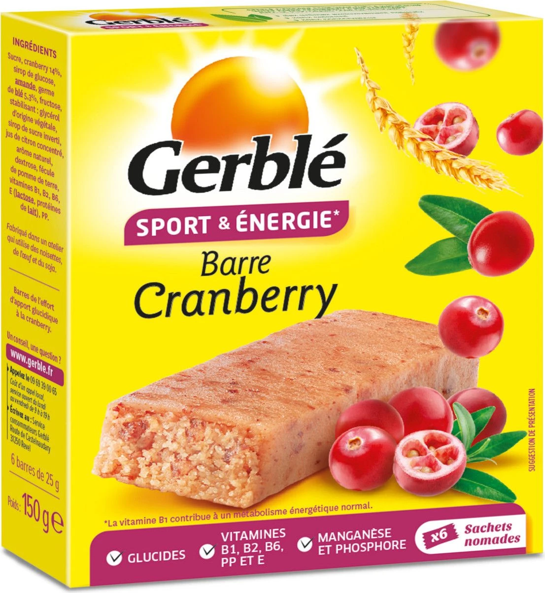 Composition : Sugar, cranberry 14%, glucose syrup, almond, wheat germ 5.3%, fructose, stabilizer: glycerol of vegetable origin, invert sugar syrup, concentrated lemon juice, natural flavor, dextrose, potato starch, vitamins B1, B2, B6, E (lactose, milk proteins), PP.