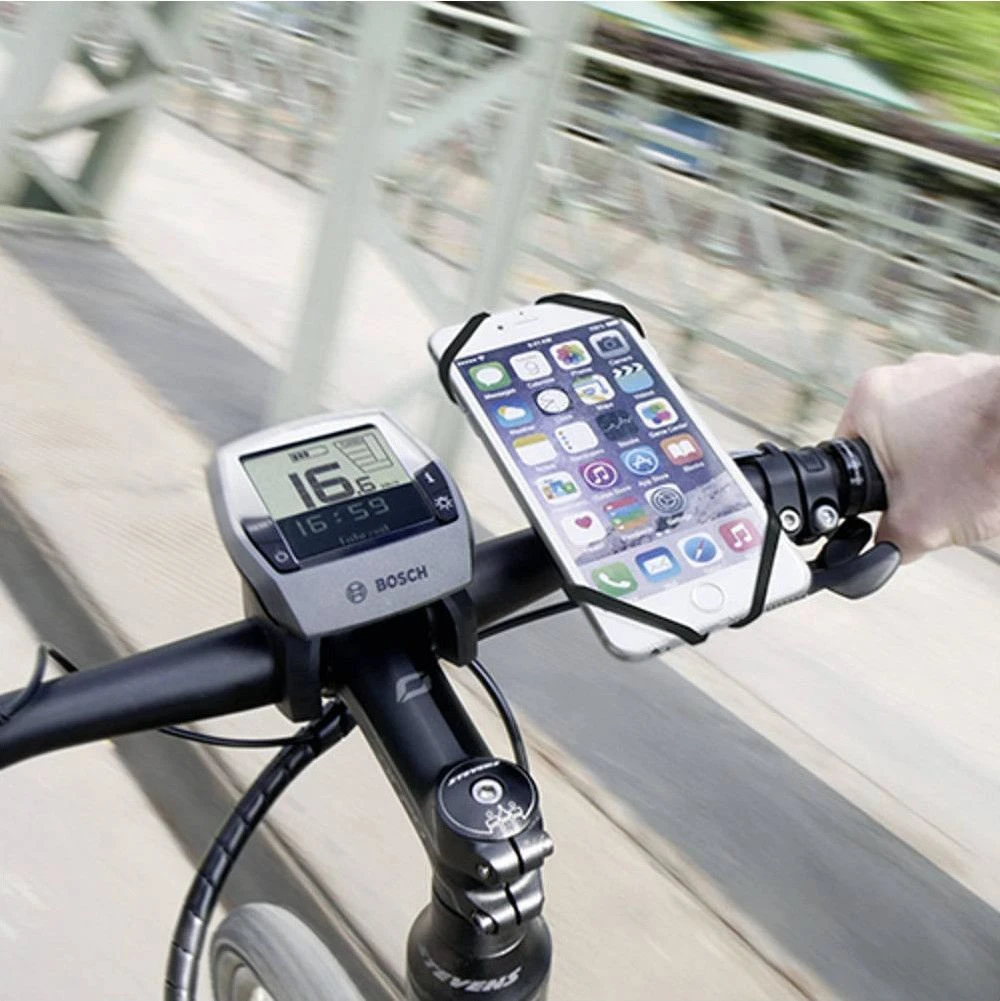 The smartphone is held securely on a large padded base. The buttons and the charging port remain freely accessible and the camera is not concealed.