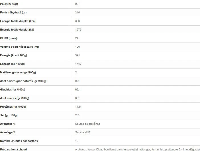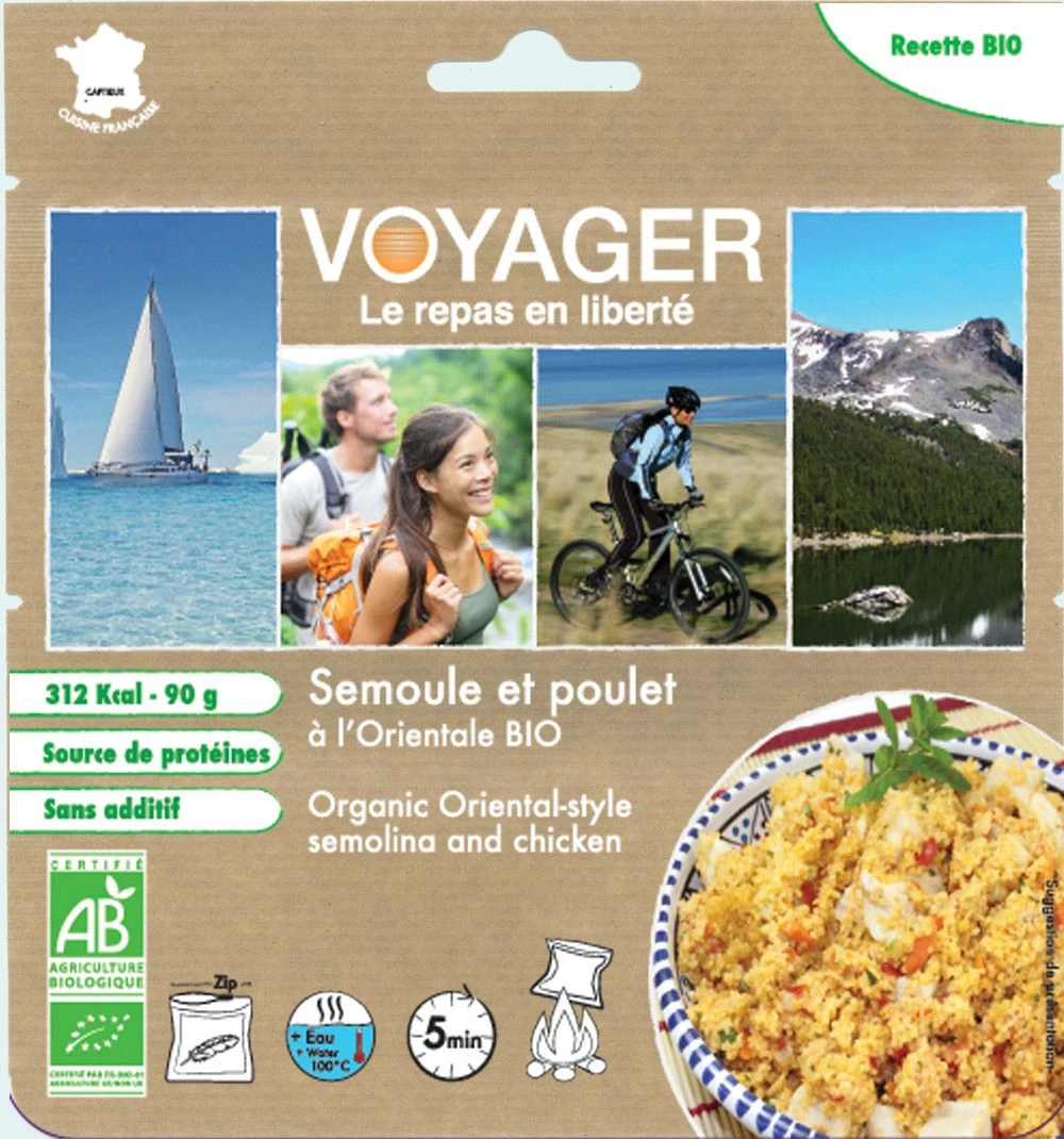 Organic Semolina and chicken Oriental-style, A delicious stew with organic chicken, spiced with pieces of tasty vegetables and a peak of sweet : thanks to its dehydrated plums. Find all the orientalism in this instantaneous preparation, for your lunch pause, as well as in hiking or for victualling.