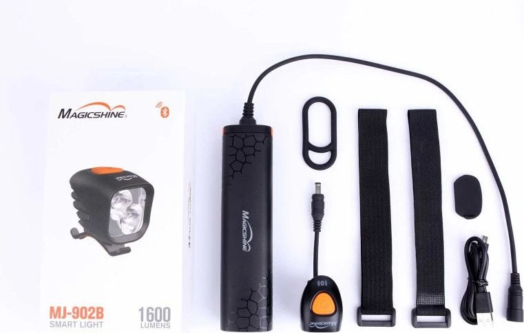 The Bluetooth version 902B offers the possibility of programming the number of lighting levels, brightness and modes thanks to the Magicshine application for IOS or Android. After programming via the app, operation is optional via the external Bluetooth remote switch (R).