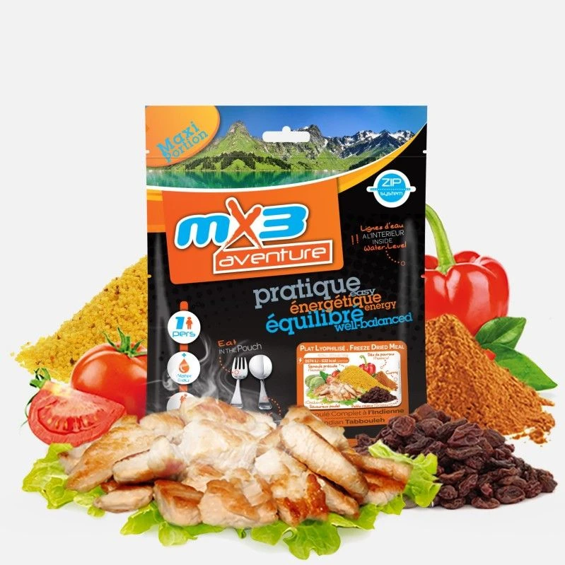 Our freeze-dried Indian tabbouleh is a refreshing dish that can be eaten cold, ideal for hot days. Its delicate blend of spices makes the taste buds travel.