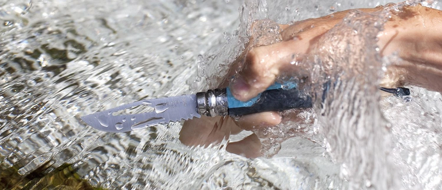 - Safety ring : Invented by Marcel Opinel in 1955, the Virobloc safety ring is fitted to all folding knives from the N° 06. Cut out of stainless steel, the Virobloc has two sections, one fixed and one sliding. In addition to locking the blade open (safety in use), it is now possible to lock the blade closed (safety in transport).