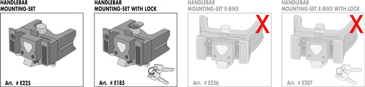 - Note: Cannot be used in combination with mounting set for E-bike (art. code E207 and E226).