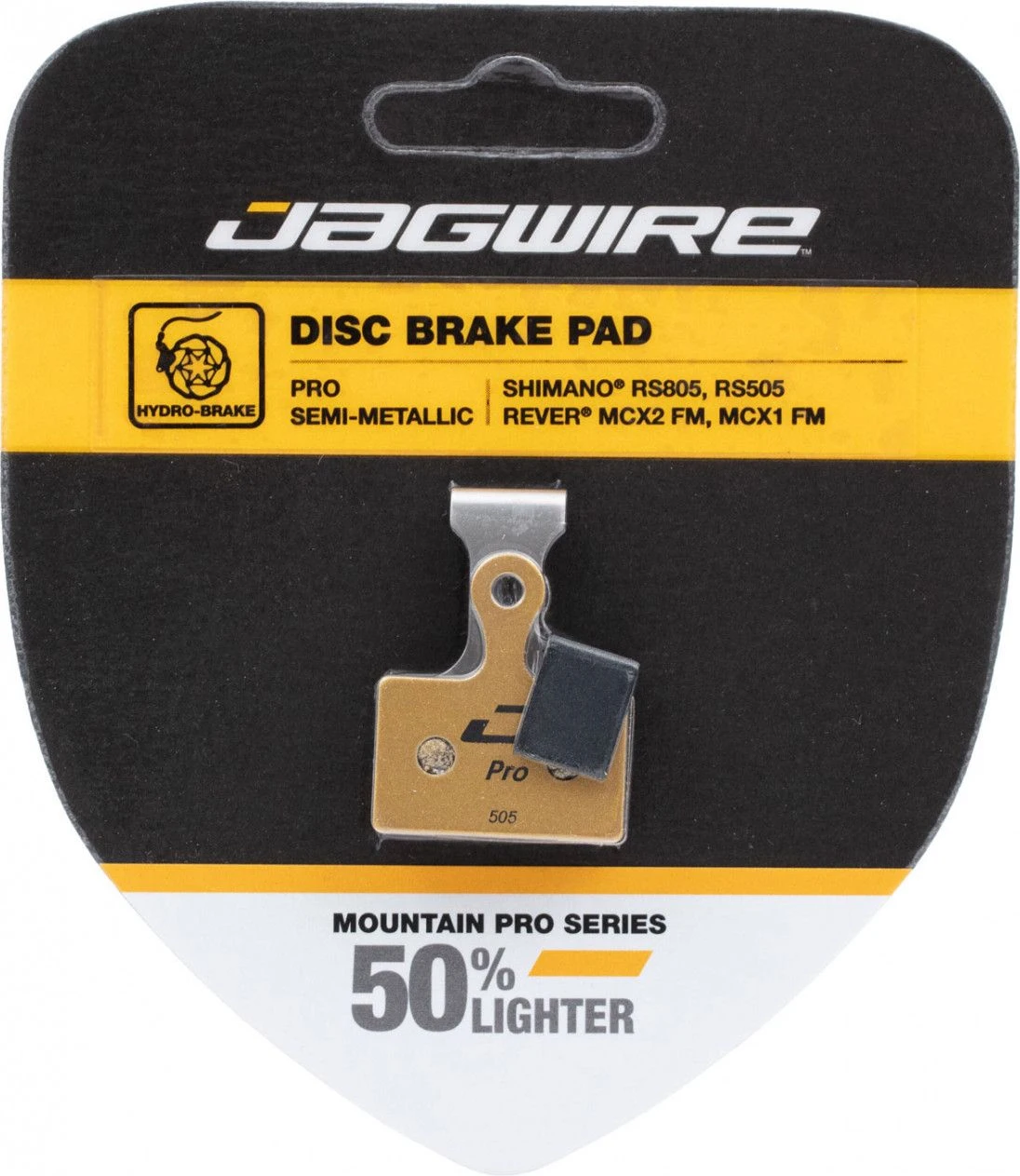 - Pro Semi-Metallic: Jagwire Pro Semi-Metallic pads feature a lightweight aluminum backing plate attached to the same low-noise, high-performance compound found in the Sport Semi-Metallic series. Weight is reduced by nearly 50%. These pads are perfect for cross-country/marathon mountain bike use.