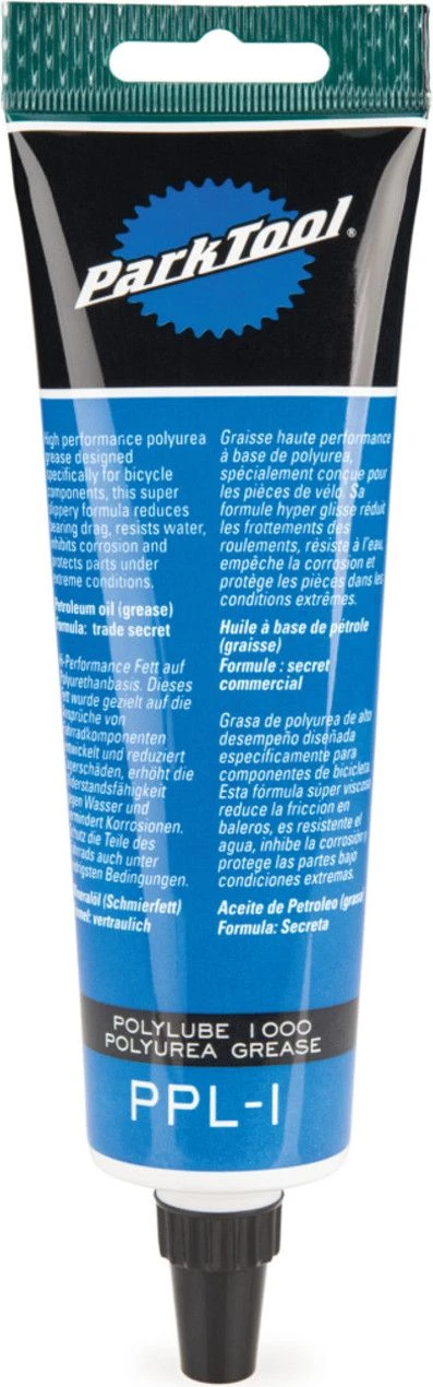 The lubricant Park Tool based on poly-urea was developed specifically for bicycle maintenance. The synthetic base Polylube 1000 can withstand the most extreme conditions. Waterproof, the Polylube is compatible with other lubricants.