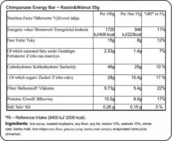 CHIMPANZEE Energy Bar 100% Natural Raisin Wallnut 55g VEGAN