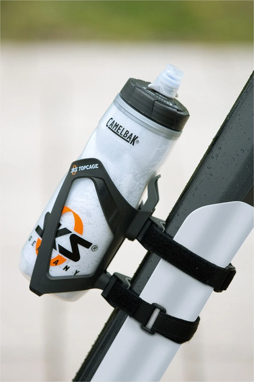 The AnyYWHERE bottle cage adapter really lives up to its name. You can mount it anywhere on the frame of the bike, even where there are no mounting holes. The TOPCAGE bottle cage as well as a strap for wider frame tubes up to 80mm in diameter are also provided. As a reserve, shorter straps are also available to secure the adapter to the seat post.